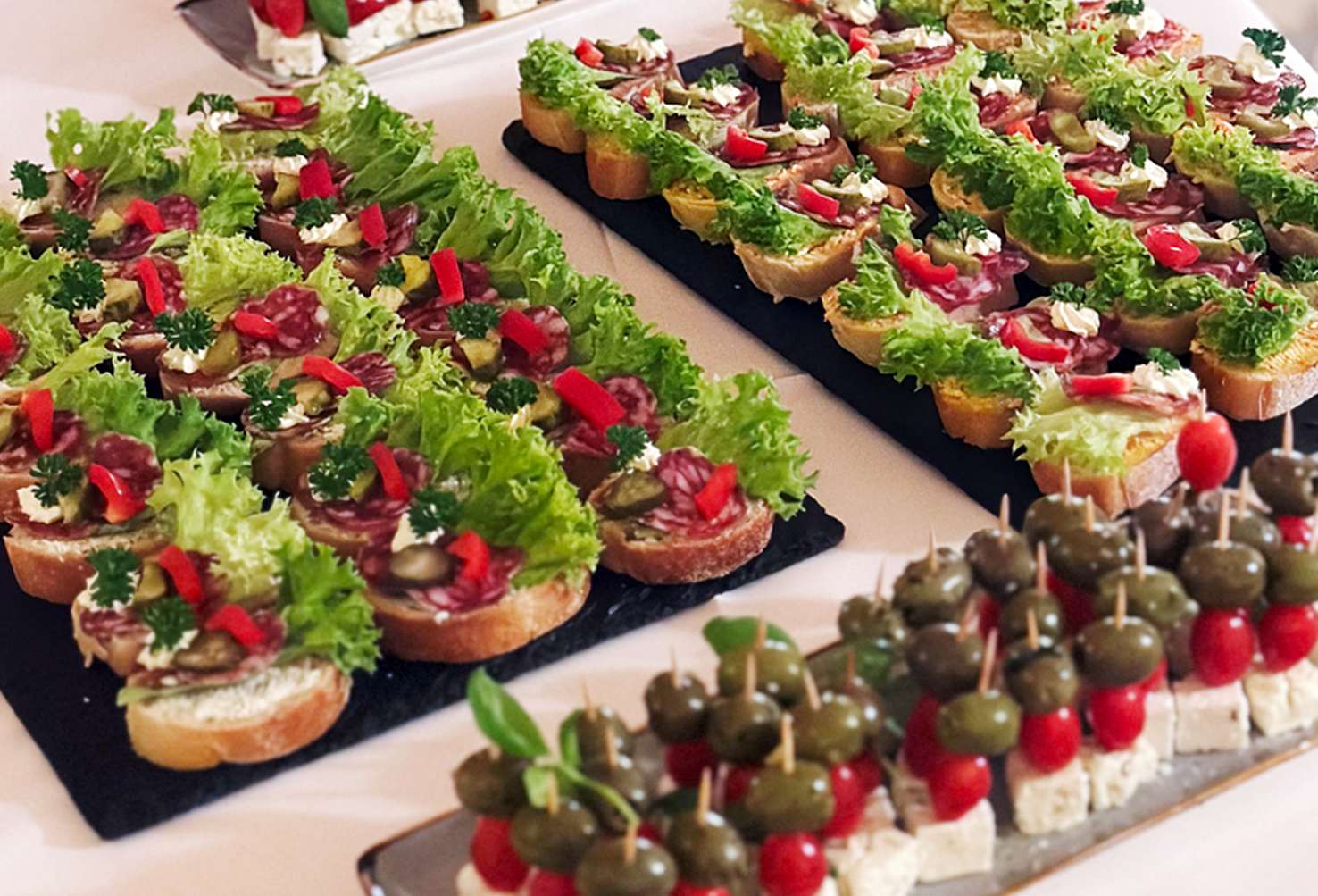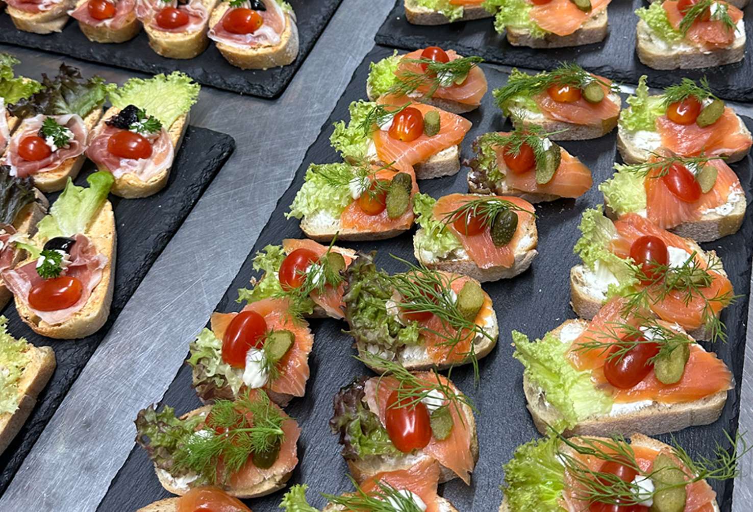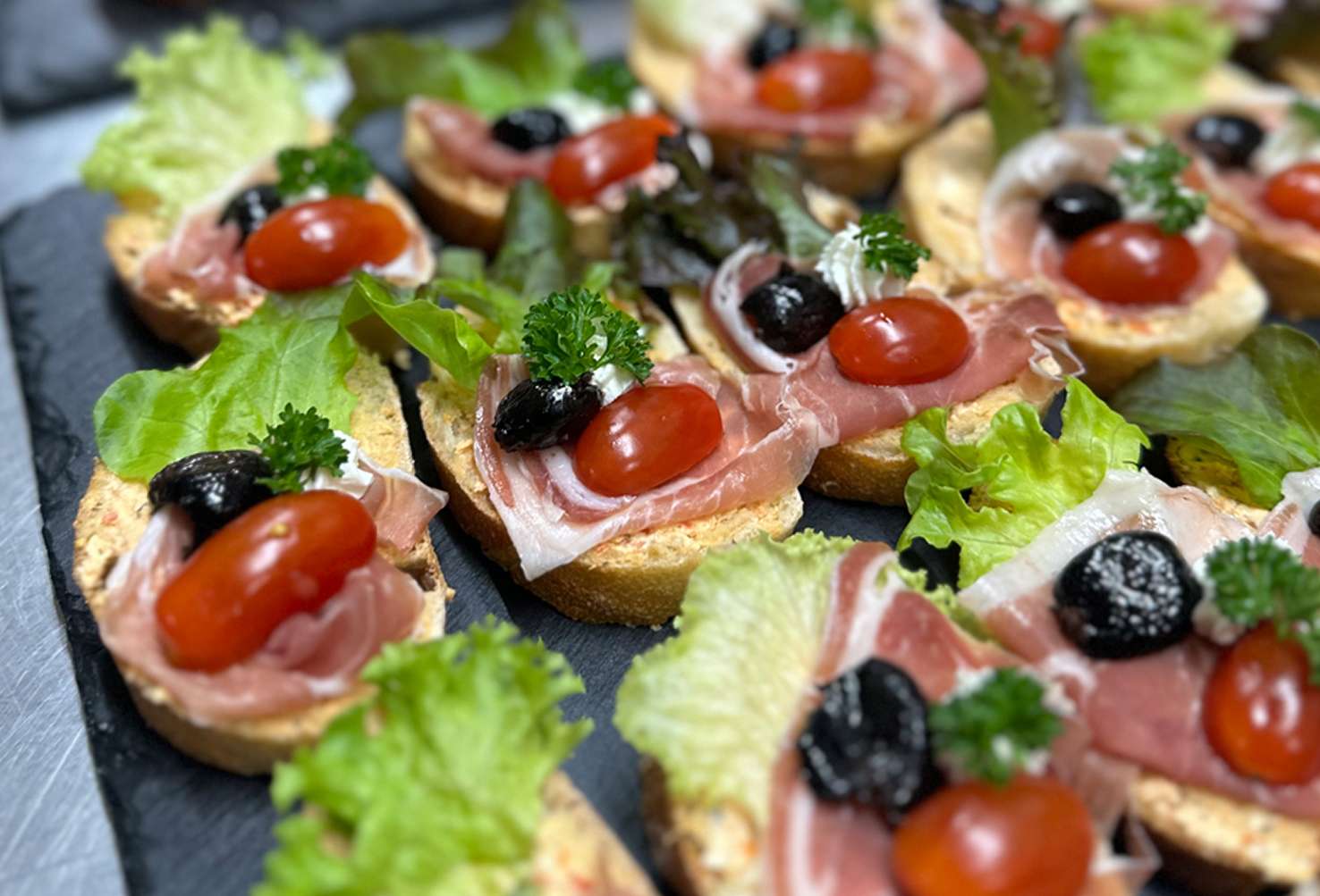 Frisch zubereitet, hausgemacht und geschmackvoll angerichtet – perfekt für Empfänge, Meetings oder private Feiern. Lieferung oder Abholung möglich.