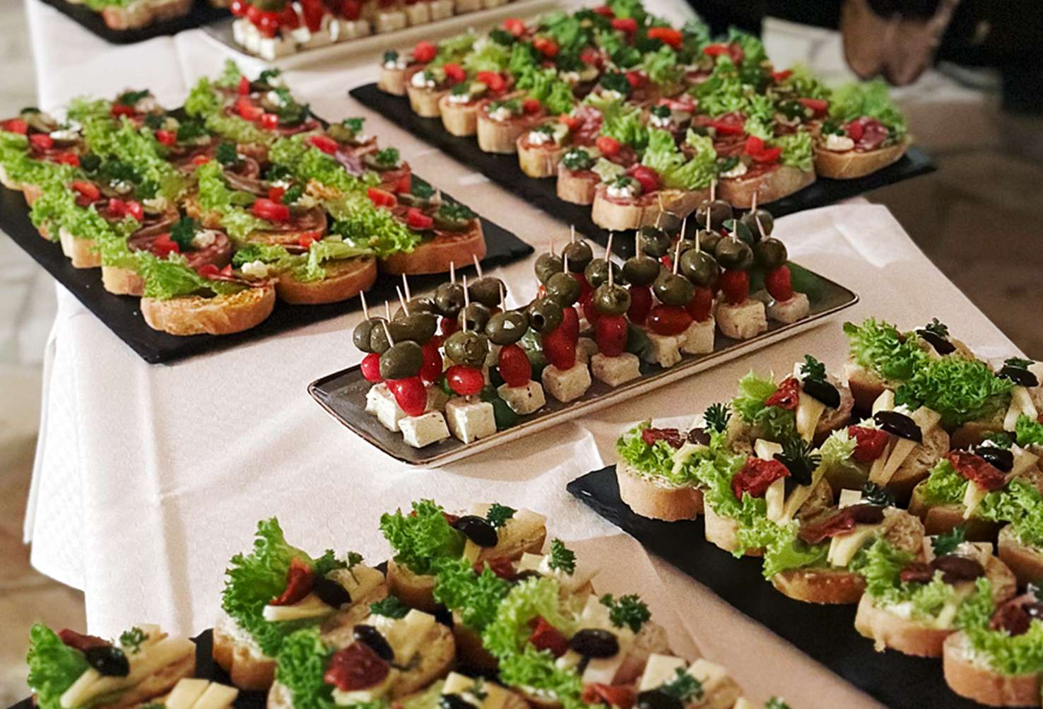 Feine mediterrane Kleinigkeiten – servierbereit und ideal für Business-Lunches, Stehempfänge oder Apéros. Auf Wunsch liefern wir oder stellen zur Abholung bereit.